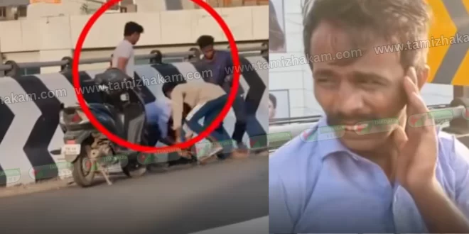 சேலம் மாவட்டம், புதிய பேருந்து நிலையம் அருகே உள்ள பாலத்தில் அக்டோபர் 25 அன்று காலை 7 மணிக்கு நடந்த சம்பவம். மூன்று இளைஞர்கள் ஒரு இளம் ஆணை தாக்கி, அவரது செல்போனை பறித்து ஓடிய வீடியோ சமூக வலைதளங்களில் பரவியது.